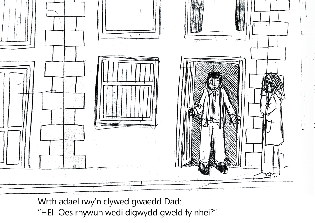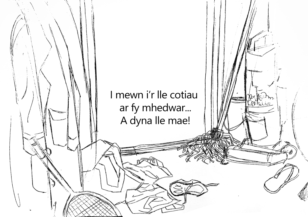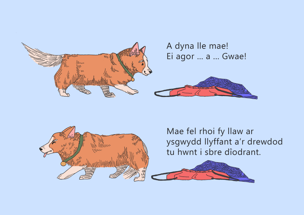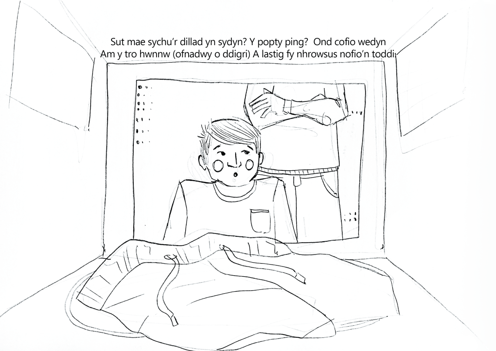 I entered the 2023 Welsh Eisteddfod under the literary category, where I had to illustrate a Welsh story and create a dummy book for children aged 7 years old. The story is about a boy who loses his swimming trunks right before school, and his quest to find them before school begins.