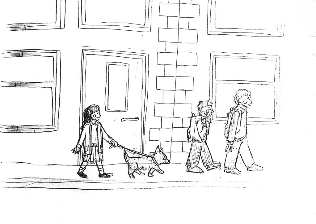 I was excited to work on a Welsh story as a Welsh illustrator, and I had plenty of ideas for the look of the story. I have grown up in the Swansea Valley in south Wales, and this was my biggest inspiration. Think grey clouds, terraced houses and mountains on every side. Myself and my husband climbed a few hills ourselves to take plenty of reference photos for the setting of the story. We also visited Brecon to get a feel for those squashed together terraces.
